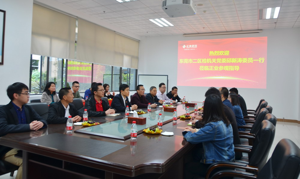 1月25日,為走進、了解和支持民營企業黨建工作,東莞市二區檢機關黨委邱新濤委員一行20余人蒞臨正業科技進行參觀考察交流。正業科技總裁辦主任雷卓林、總裁辦品牌部經理周亮等領導熱情接待了來訪嘉賓。