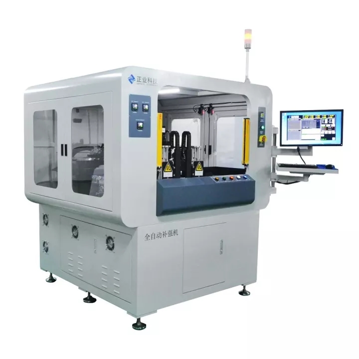 自動補強機是正業科技研發的一款適應于對柔性線路板貼合補強材料的技術成果,也是本次參觀活動的明星產品之一。該款設備實現全自動上下板,自動放隔紙,節省人工成本,可一鍵倒入,換料號只需10分鐘,該款設備貼合精度高:±50um(高精模式),±75um(高速模式),貼片效率快:2500PCS/H(高精模式),4000PCS/H(高速模式)
